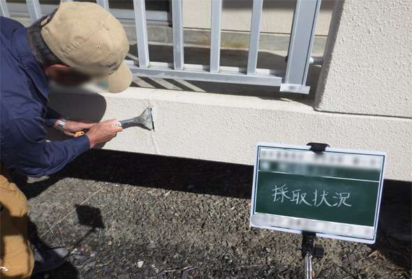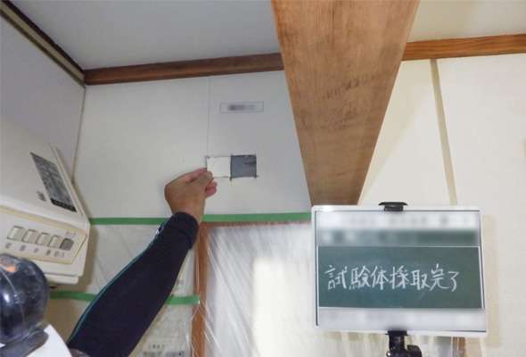 内壁や外壁より試験体を採取し、分析機関において検査依頼及び報告